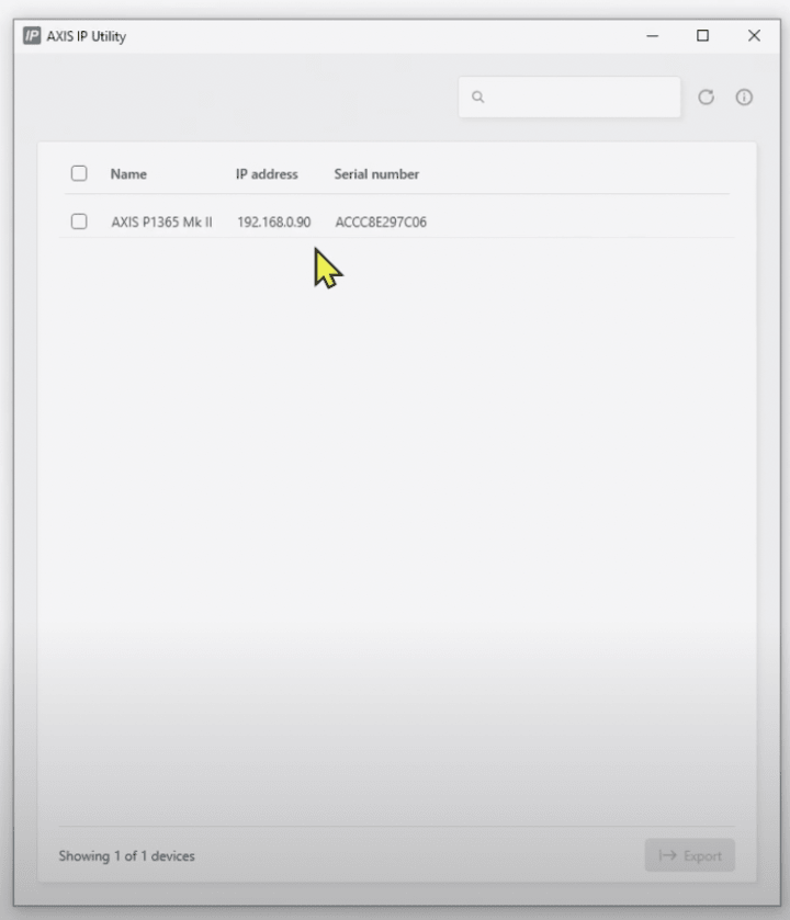 If not connected to a router, the default IP address for Axis cameras is 192.168.0.90. Alternatively, connect your camera to a router, and it will be assigned an IP address automatically. Explore the Axis IP Utility to find the camera’s IP address on your network.