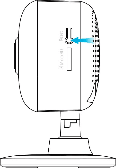 For the Pan, Tilt, and Zoom (PTZ) camera, the lens must be tilted up in order to reset. Hold down the button for 15 seconds before releasing it.