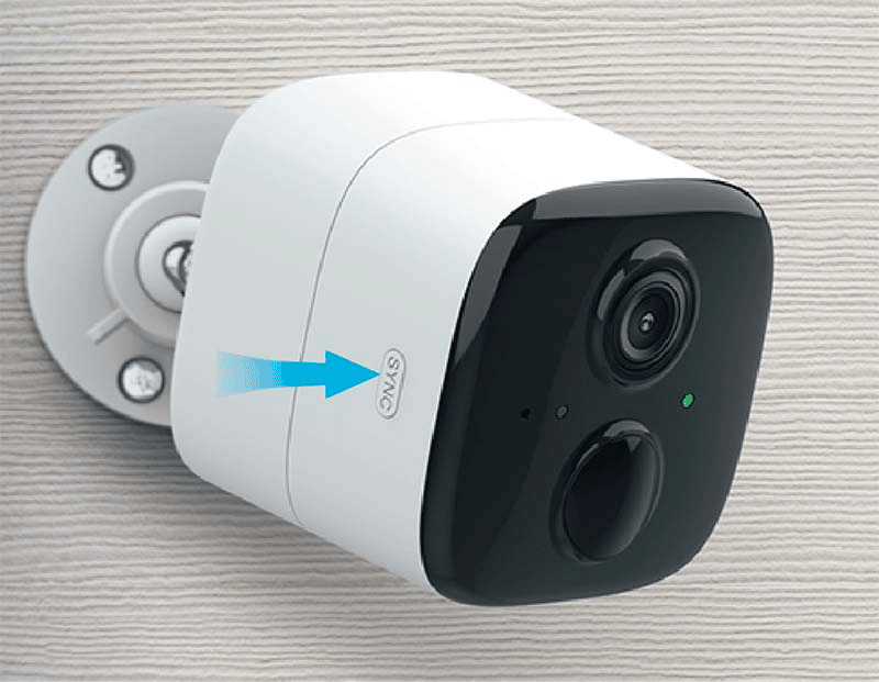Note that for this camera, it is necessary to remove its backing prior to resetting it. It is magnetic and should easily pop off. Furthermore, the LEDs will start blinking an amber color as it resets.