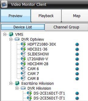 On the left side of the software there's a menu that shows the DVRs separated by groups. This is useful to keep everything organized.